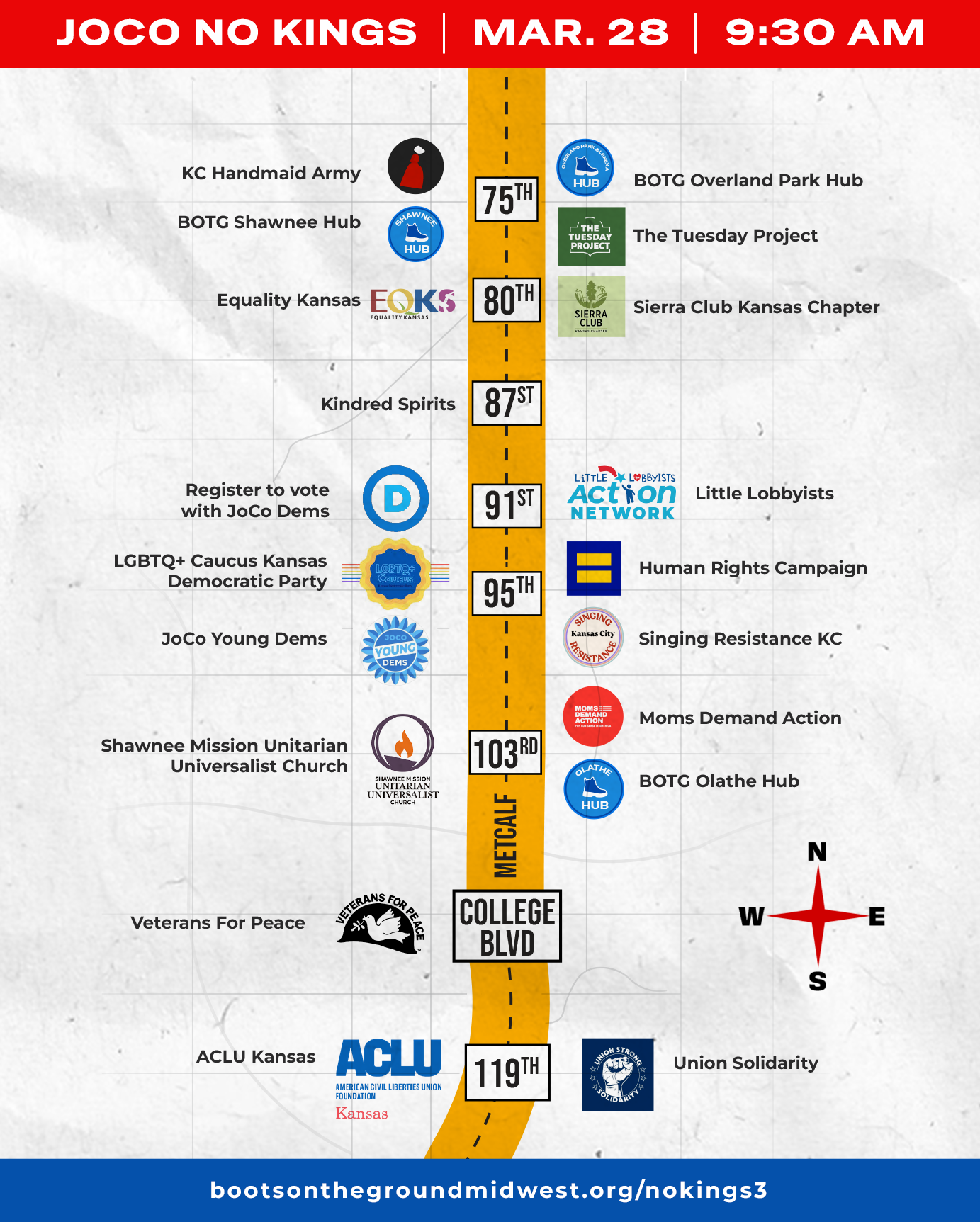 The event is sponsored by Kansas Interfaith Action, ACLU, Boots on the Ground Midwest, Mainstream Coalition, 50501 Kansas, Voter Rights Network, El Centro, The Kairos Center, Sisters of Charity of Leavenworth, Women of Kansas and the Climate + Energy Project.